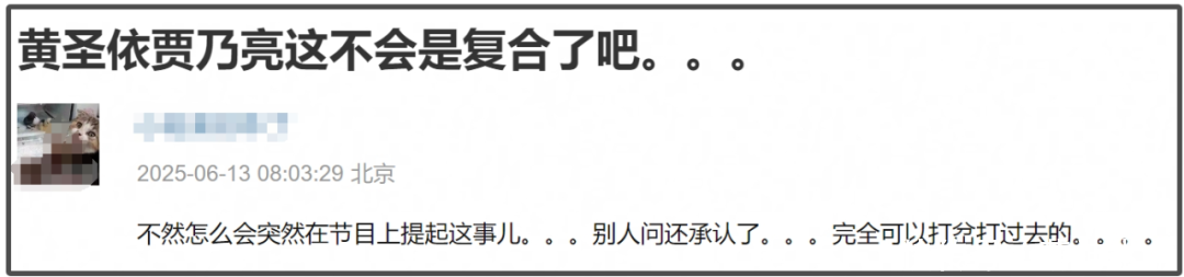 明明可以打岔将话题岔过去,或者含糊其辞对初恋对象避而不谈的,但是黄圣依却一反常态地将和初恋的故事几乎全盘托出,这略显反常的举动不禁让人怀疑黄圣依和贾乃亮该不会是复合了吧?不然怎么会突然在节目上提起对方,还大方承认是初恋。