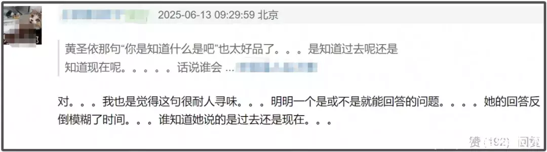 另外,黄圣依在节目中的话语也让人觉得值得品味。当主持人试探性地cue到“贾老师”的时候,黄圣依的第一反应不是果断的承认或者含糊地糊弄过去,而是反问主持人“你是知道什么是吧”,她当时的表情比起惊讶更像是羞涩。而且,这句话中的“知道什么”很耐人寻味,是知道过去初恋相关的什么?还是知道现在什么?黄圣依的反问模糊了时间,更让人觉得故事是未完待续。