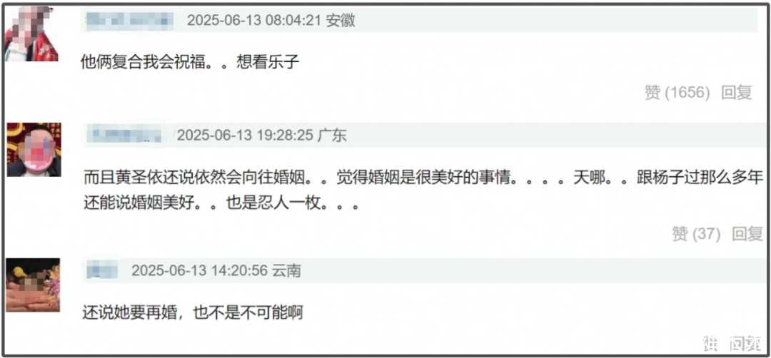 此外,当节目中主持人问黄圣依觉得自己还会再进入下一段婚姻吗的问题时,黄圣依没有犹豫,直接用十分坚定的语气表示“那肯定会”,这毫不犹豫的态度,积极确定的语气,让人不禁怀疑黄圣依是否已经有了新情况。如果黄圣依真的和贾乃亮复合了的话,大家还是衷心祝福的,只是杨子恐怕就煎熬了。